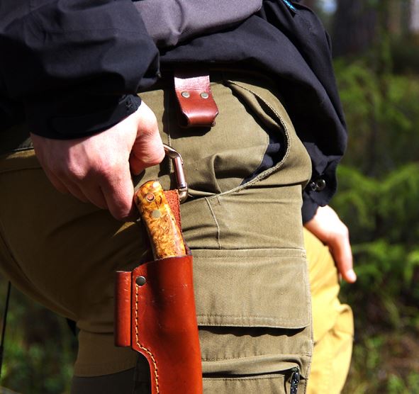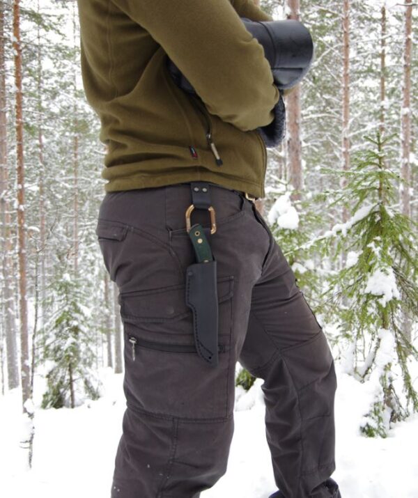 Casström’s No.3 Dangler is an excellent accessory which lets your knife hang lower down from the waist, enabling it to move freely.This makes movement and handling on and off the belt easier and smoother. The specially designed D-ring can also be used for other purposes.