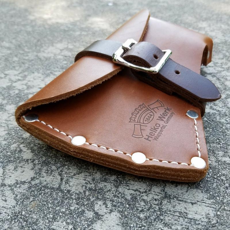 Het foedraal sluit met een verstelbare gespband die kan worden aangetrokken of losgemaakt om een ​​goede pasvorm te krijgen. Naarmate het leer in de loop van de tijd uitrekt, zorgt het gesp- en riemsysteem ervoor dat je een mooie aansluitende pasvorm behoudt. Dit bijlkopfoedraal is dik, duurzaam en gaat jaren mee.