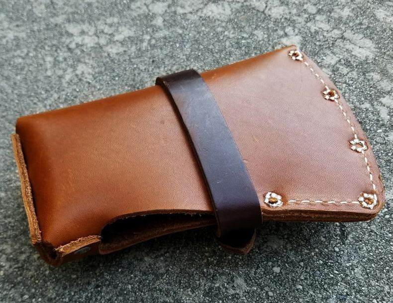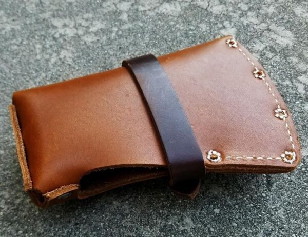 This full head deluxe sheath is made from quality top-grain US latigo cowhide leather. The leather has been treated and infused with oils and waxes for moisture protection. This also gives the leather a rich color and softens the material, making it supple and relatively pliable.