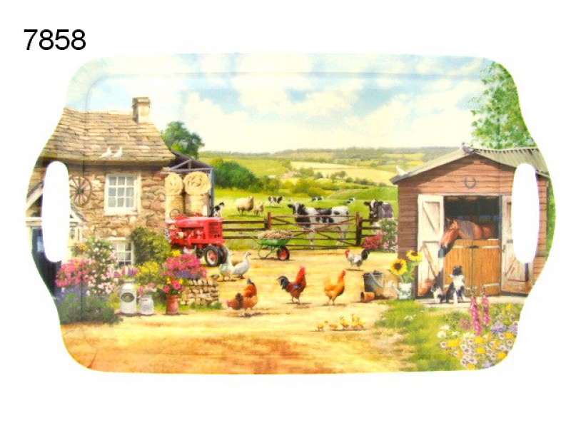 Groot dienblad ‘boerderij’. Afwasbaar.