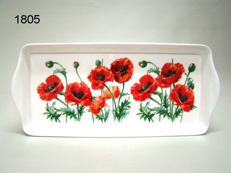 Middel grote dienblad met klaprozen. Handig voor het serveren van drinken en/of kleine gerechten.