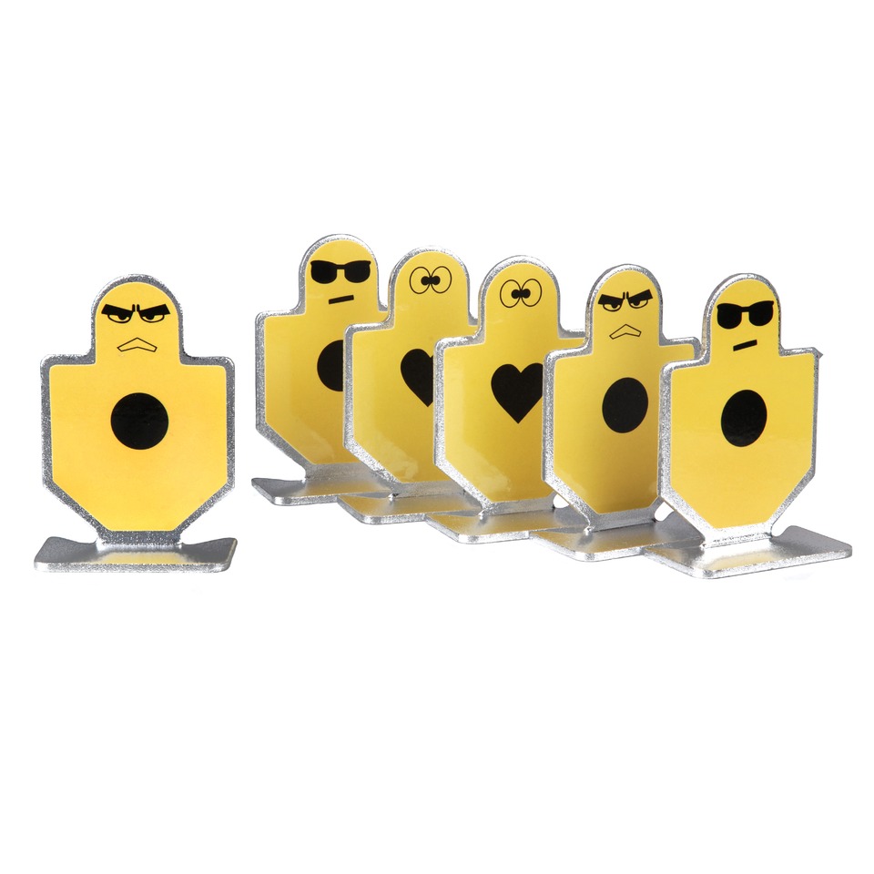 Zesdelige doelen set uit metaal. Zet ze bij gebruik met een luchtbuks zo neer dat ze wel om kunnen vallen, of anders in een lichte hoek zodat u geen ketsing om de oren krijgt.