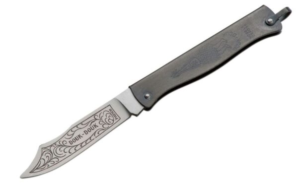De Douk-Douk is een eenvoudig slipjoint-mes zonder vergrendelingsmechanisme, maar met een zeer sterke rugveer om het mes te openen en sluiten. Het bestaat uit slechts zes delen: