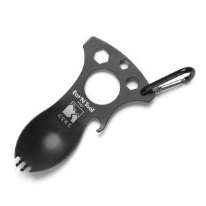 CRKT Eat’N Tool. Is het eten met gereedschap of sleutelen met een spork? Jij mag beslissen. Met de Eat’n Tool kun je beide. Ideaal voor grammenjagers. Deze spork heeft een ingebouwde flessenopener, schroevendraaier waarmee je ook deksels van blikjes kunt wrikken, en je kunt er moeren in de maten 6, 8 en 10mm mee aandraaien. De Eat’n Tool komt met een karabiner. Militairen kunnen hem bij het snelverband in het beenzakje stoppen.