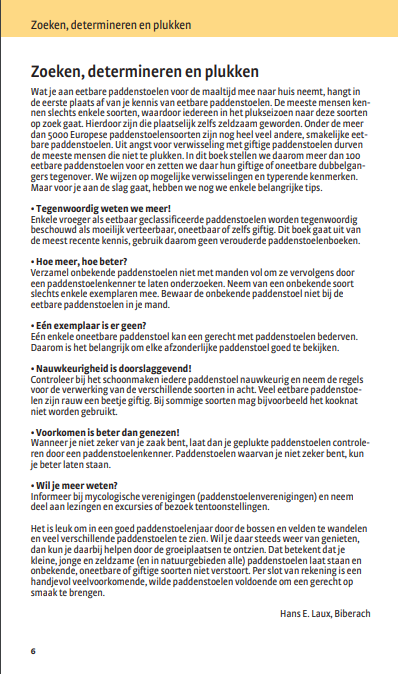 Eetbare en giftige paddenstoelen, door Hans Laux. Een handzame zakgids waarin 175 eetbare paddenstoelen naast hun giftige lookalikes staan.