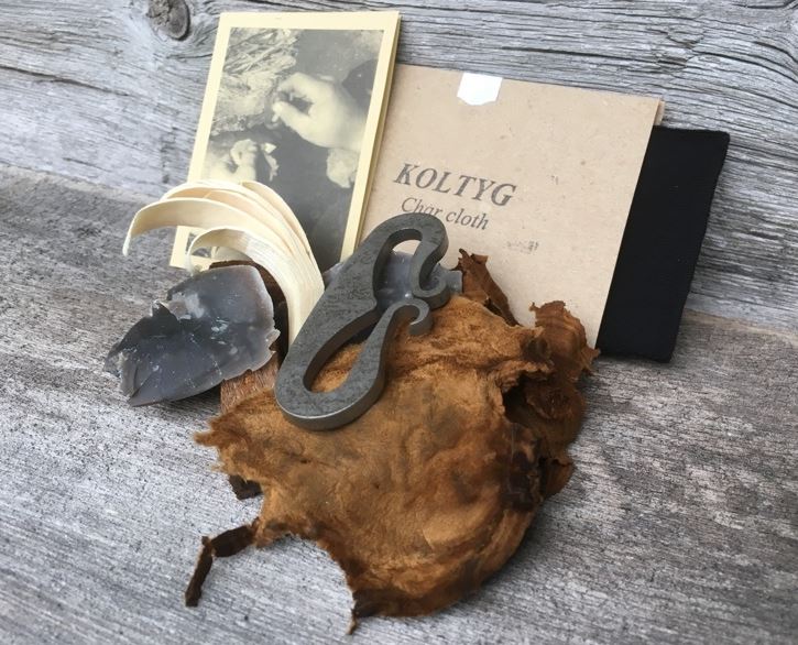 Wanneer het staal tegen een scherp stuk vuursteen wordt geslagen, stoot het een vonk uit die vervolgens een vonk of koolstofdoek (char cloth) ontsteekt dat dan begint te gloeien.