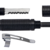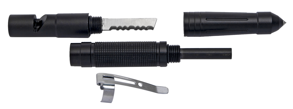 De schroefdraden van het gereedschap sluiten precies op elkaar en zorgen ervoor dat het vuurstaal en de zaag worden beschermd tegen vocht.