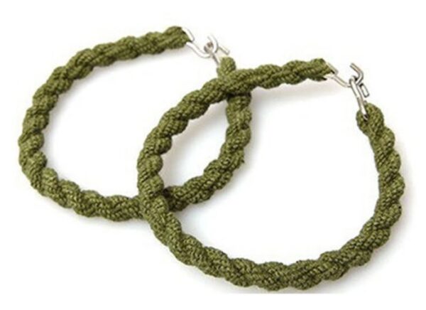Trouser Blousers. Dubbelgedraaid elastisch koord met een haakje aan ieder eind. Voordeel: je kunt ze omdoen en afdoen terwijl je je laarzen of schoenen al aan hebt.