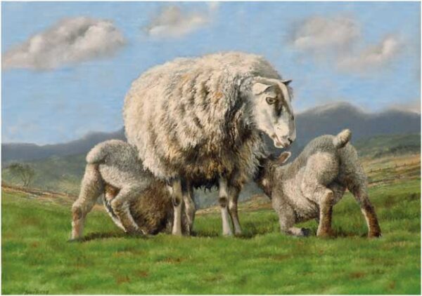 Schaap & Lam Wenskaart. Naar een schilderij van Brian Tovey. – Afmeting (mm): 200 x 140 – Blanco binnenkant voor uw eigen bericht – Met envelop. – Verpakt in cellofaantje