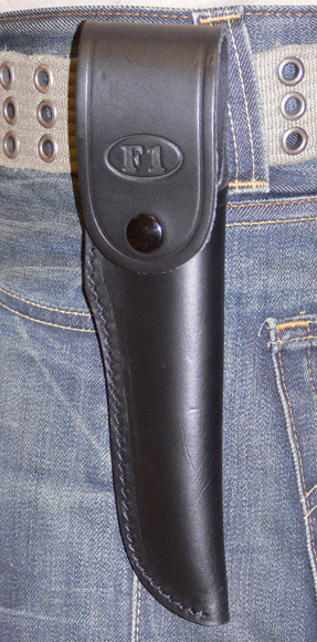 Leren schede met klep voor de Fallkniven F1. Kleur: zwart.