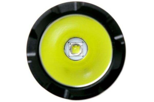 De tactische drukknop op de achterkant is op drie manieren te gebruiken: kort drukken zet de lamp meteen aan. Hiermee selecteer je ook de stand. De knop echt indrukken laat de lamp constant aanstaan, en als je de knop 0,8 seconde ingedrukt houdt, schakelt deze naar de strobe. De aluminium body is zeer sterk en kan tegen vallen tot 1,5 meter. Ook is de lamp helemaal waterdicht. Hij werkt op één 18650 batterij of twee CR123A batterijen (niet meegeleverd).