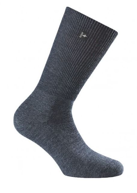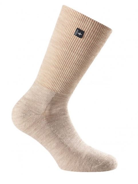 Polypropylene fibres on the skin wick away moisture to the wool terry. The feet are kept dry and warm.