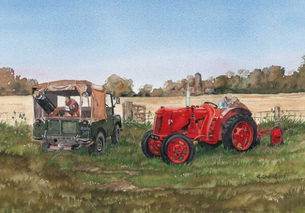 Wenskaart / correspondentiekaart Field Repair. Ook aan een Cropmaster tractor moet wel eens gesleuteld worden. Als het moet ergens in een wei.