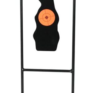 Doelsilhouet FLES voor luchtpistolen! Raak de gele schijf en deze zal wegklappen. Raak daarna het kleinere gele schijfje en de grote schijf klapt terug. Stabiel metalen ontwerp. Afmeting: 24×18 cm.