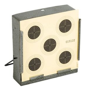 Doelsilhouet KRAAI voor luchtbuksen en persluchtwapens. Raak de gele borst en die zal wegklappen. Raak het kleinere gele plaatje bij de snavel, en de grote gele plaat klapt weer terug.. Stabiel metalen ontwerp. Afmeting: 24×18 cm.