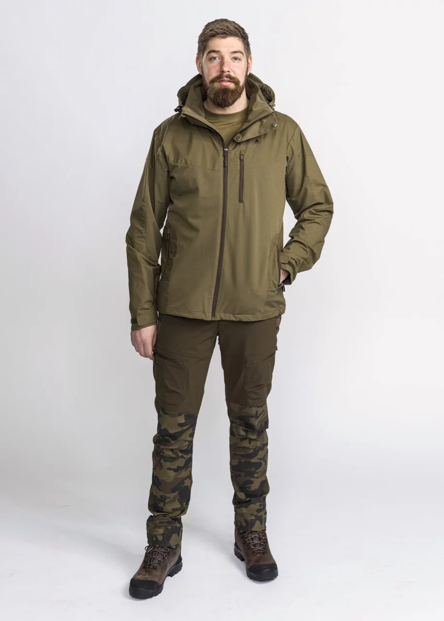 Finnveden Hybrid jack. Sterk, rekbaar en duurzaam jack met gewaxte afwerking en waterafstotende eigenschappen. Voor buitenactiviteiten zoals wandelen, wandelen, vissen en voor een actief stadsleven.