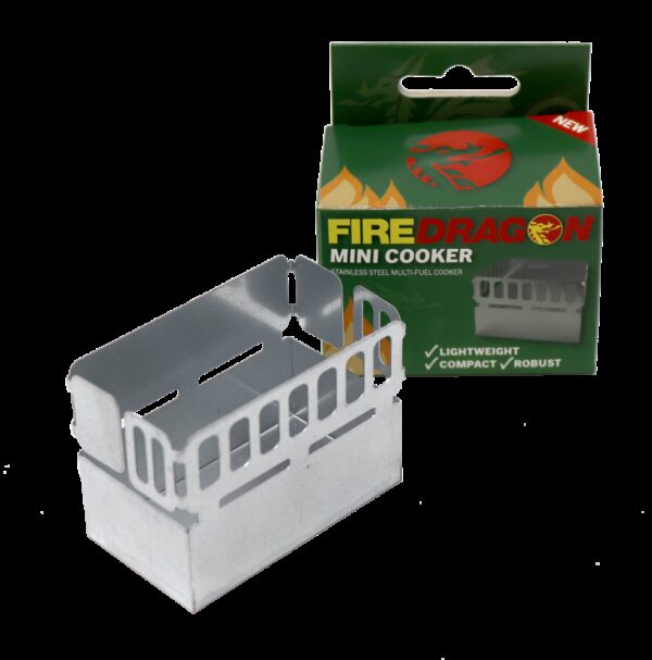 De FireDragon Mini Folding Cooker is een compact en lichtgewicht komfoor van aluminium. Het heeft aan één zijde een windscherm. Geschikt voor Fire Dragon, Esbit e.a. tabletten plus brandstof gel.