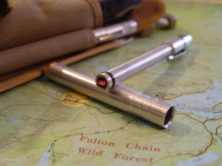 Its slim profile and aluminum construction offer the ultimate in light weight carrying convenience and its high compression seal permits ignition of natural tinders like cattail fluff and decayed wood. All this in a package no larger than an ordinary pocket pen.