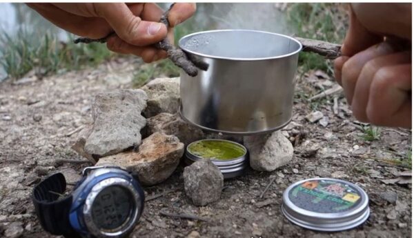 Fire Stock 20 survival brandstof. Klein licht blikje met gel dat minimaal 20 minuten brandt. Verwarmt snel. Ideaal voor een lichtgewicht tocht of als reserve voor noodgevallen. Soms is tijd kostbaar, en is het beter om die tijd te besteden aan het aanvullen van je energie door te eten in plaats van het zoeken en verzamelen van droog brandhout. Dan is dit lichtgewicht blikje een uitkomst.