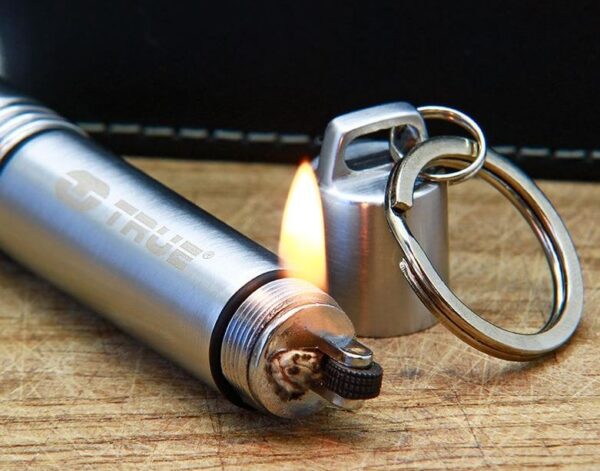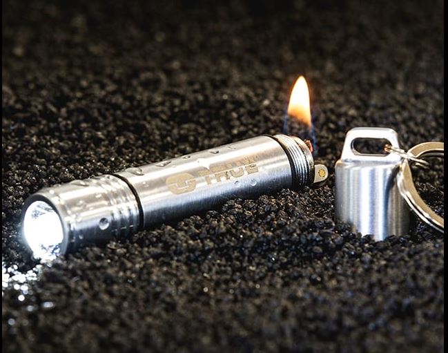 Mini-sleutelhangerzaklamp en navulbare aansteker ineen. De FireLite herbergt stiekem een ​​full-size Fire Stash-aansteker in het ene uiteinde van zijn slanke en stijlvolle behuizing van geborsteld legering, en een LED lampje in het andere eind!
