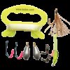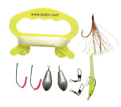 Inhoud: Instructies, lijn 36 meter op haspeltje, loodjes, wartels, haken, kunstaas