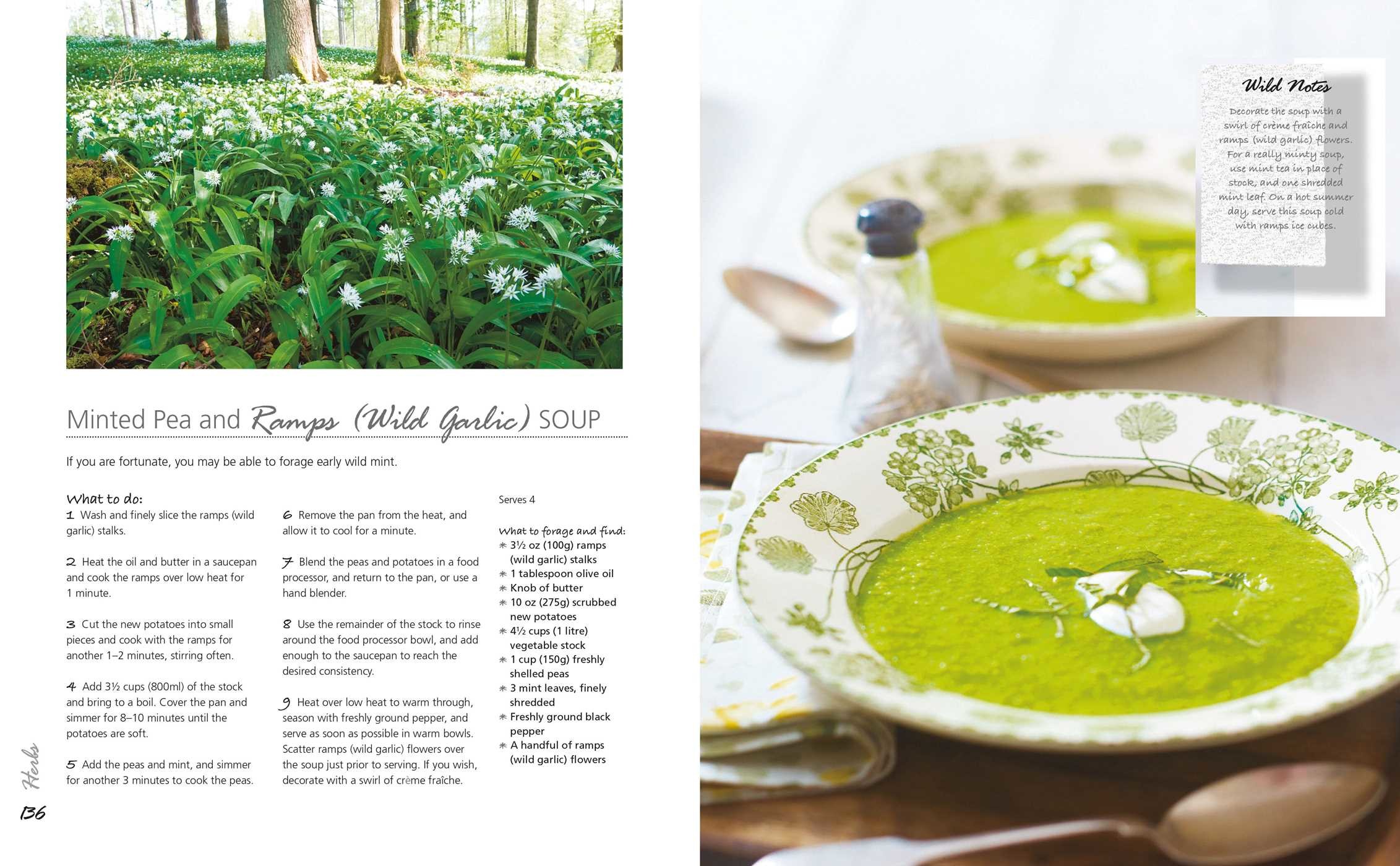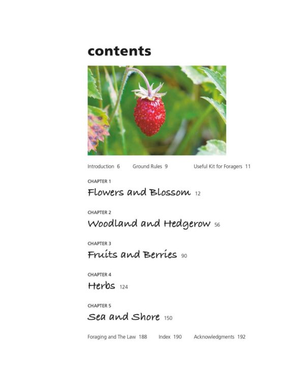 Each chapter focuses on a different food type – Flowers and Blossom, Woodland and Hedgerow, Fruits and Berries, Herbs, and Sea and Shore – and includes useful information about where to find it, how to forage and gather it, and how to use it.