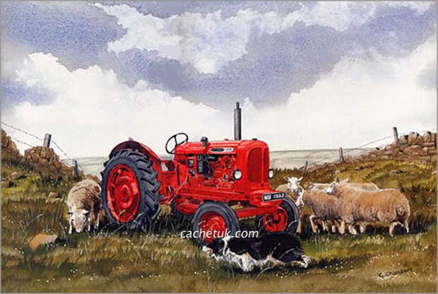 Dubbele wenskaart of correspondentiekaart “Forever Working”. Voor de liefhebbers, dit is een Nuffield Farm tractor.