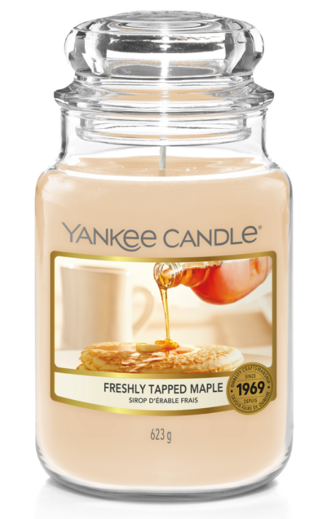 Yankee Candle Freshly Tapped Maple large jar geurkaars. Dit is een zoete en pittige geur.