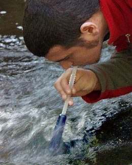Aquamira Frontier Straw Filter. Een waterfilter dat in het zakje van je shirt past. Je drinkt door het “rietje”. Goed voor ruim 110 liter.