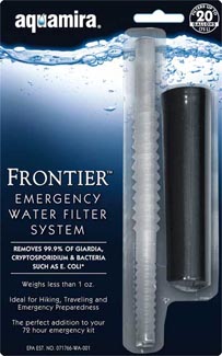 The simple to use straw allows you to drink from a cup, bottle, or directly from a water source. It features a reusable pouch that can be filled when needed or used for storage when the filter is not in use. This straw filter features our BLU Line protection—a trusty basic level of protection which is ideal for fast moving streams and springs. Each filter features activated coconut shell carbon which reduces waterborne chemicals while improving the taste, odor, and clarity of emergency drinking water. Frontier BLU Line filters are the low cost, high value choice for outdoor and back up use, offering reliable protection from the protozoan and chemical contaminants which cause the majority of all waterborne illnesses.