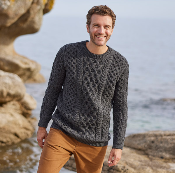 Gaelic trui van Mousqueton. Mooi gebreide trui in Ierse traditie. Gebreid op de Aran eilanden met hoogwaardig kabelbreiwerk .