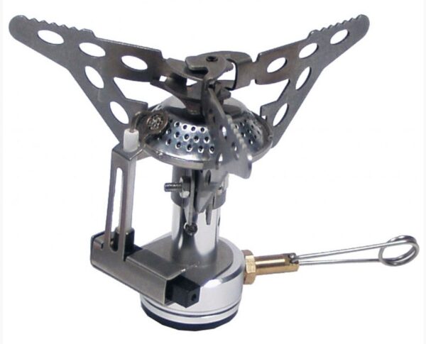 Roestvrijstalen brander met opvouwbare pannensteunen. Op gascartridges met een ventiel te schroeven.