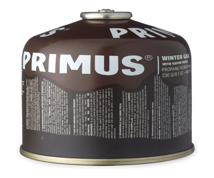 Primus ‘Winter Gas’ schroefpatroon. Vloeibaar gas verdampt steeds slechter naarmate het kouder wordt. Primus ‘Winter Gas’ lost dit probleem op en verbetert de prestaties bij temperaturen tot – 22 °C.