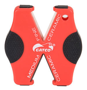GATCO MICRO-X DOUBLE DUTY SLIJPER. Zeer compacte messenslijper. Slijpt niet alleen messen, maar ook vishaken, darts, bijlen, pijlpunten en gekartelde lemeten.