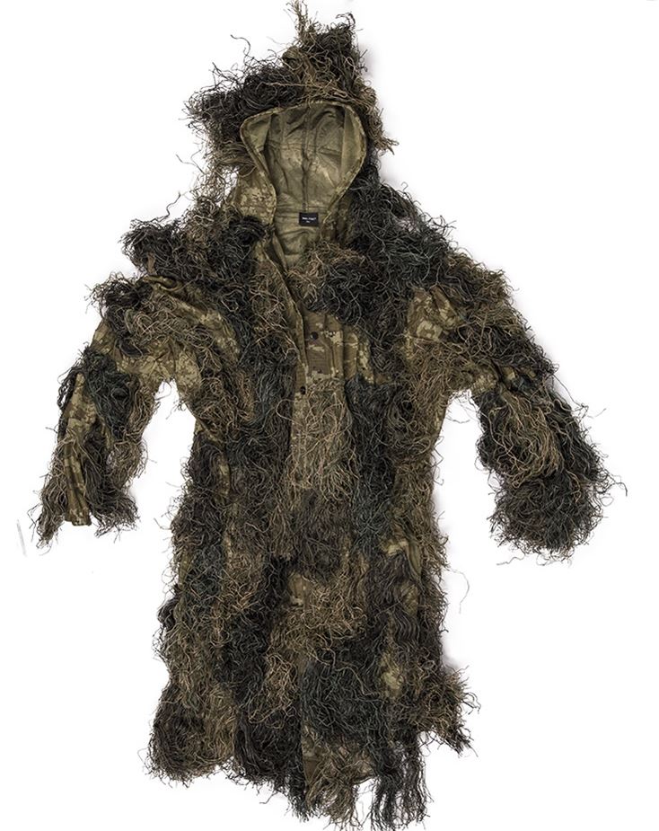 Ghillie Parka in woodland camo. Extra lang. Brandvertragend behandeld.