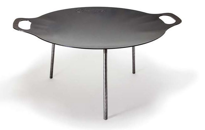 With the three pillars, the griddle and fire bowl stands steadily over an open fire. Its centre becomes hotter than the edge, thus you can keep warm steaks, bakery produce and so on, while vegetables are still frying in the middle. Before using it for the first time, the griddle must be seasoned, so that a patina forms at each use, making it naturally non-stick. Once it has been seasoned, the griddle becomes hot very quickly and you can begin grilling right away.