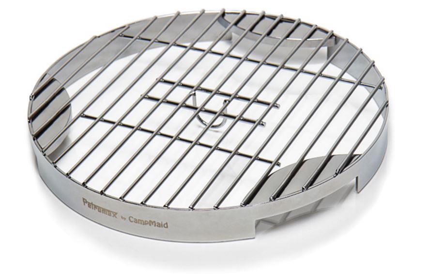 Petromax/CampMaid Grilling Grate pro-ft. Kan geplaatst worden op de Lid Holder pro-ft als een gril of als een rek bij het stomen of roken. Kan opgeborgen worden in een 6qt of grotere Dutch Oven.
