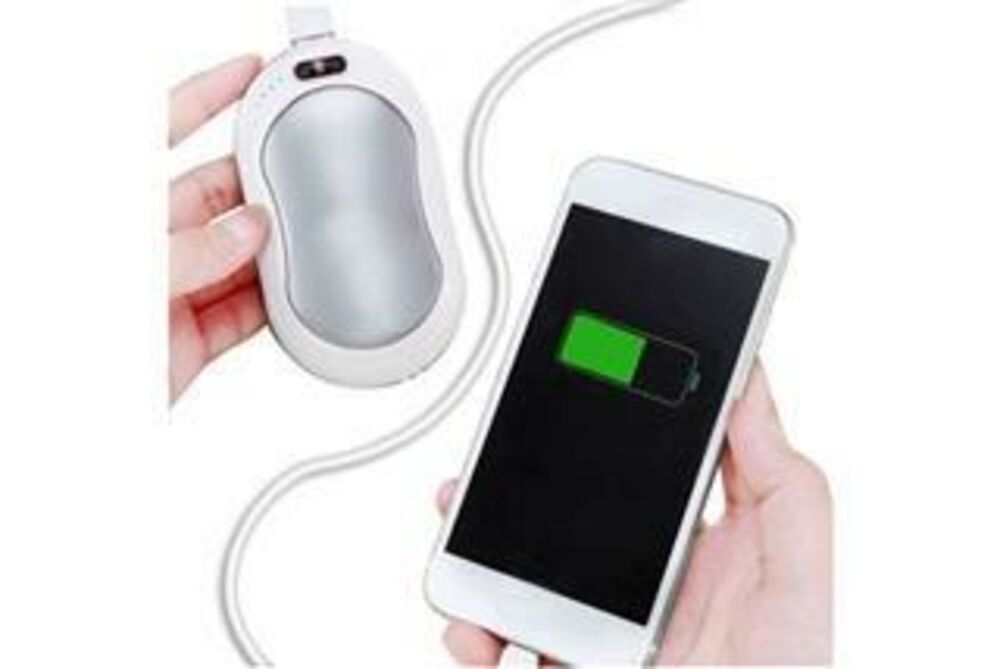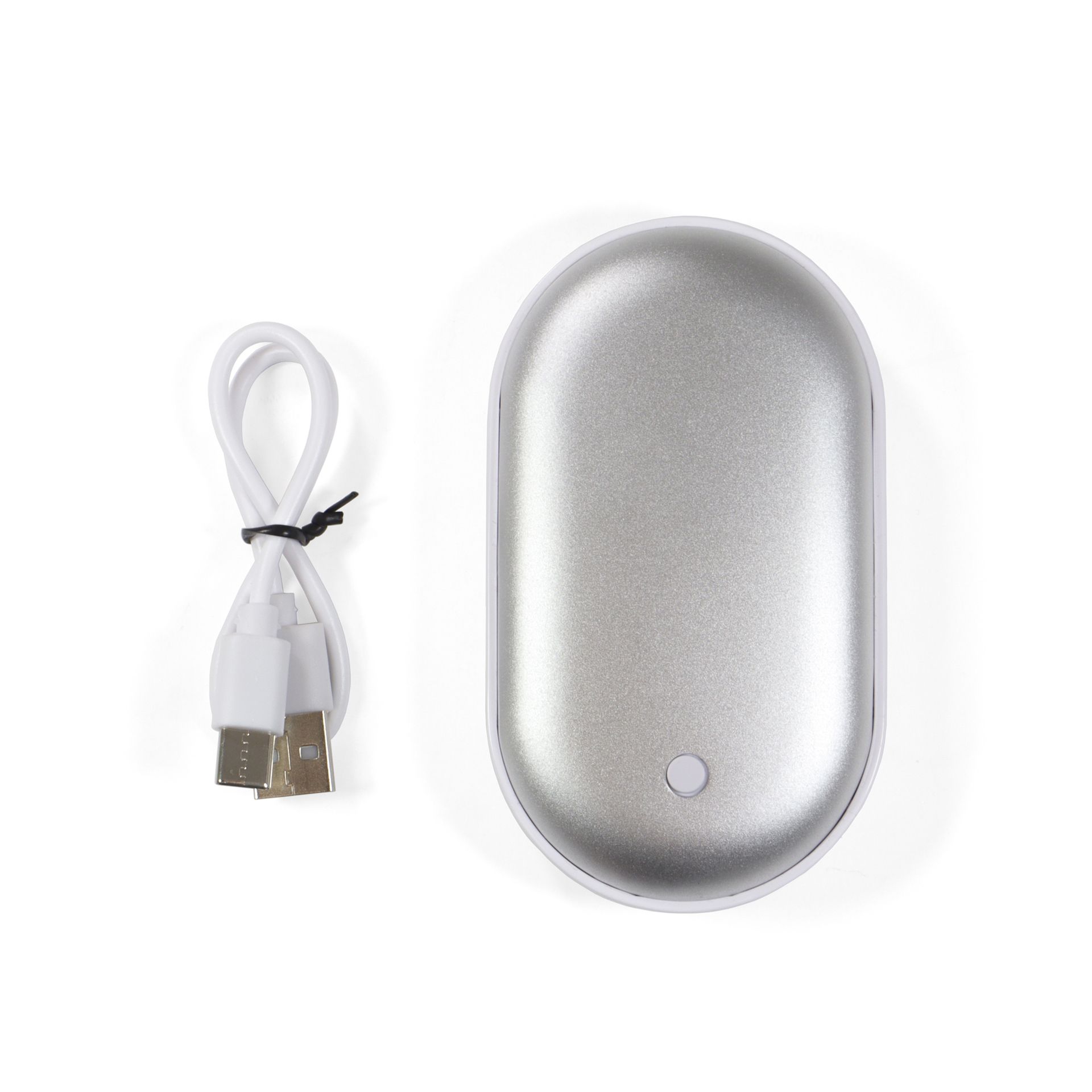 Lichtgewicht, compacte en multifunctionele USB-handwarmer met een capaciteit van 10.000 mAh, geïntegreerde powerbank, massagefunctie en LED-licht.