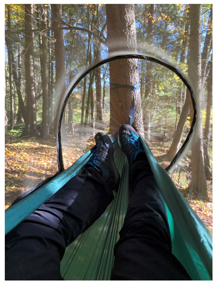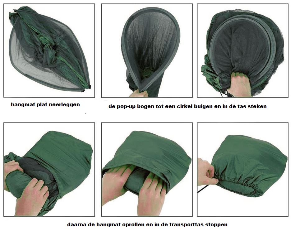 Door de hangmat om te draaien kan hij zonder klamboe worden gebruikt.