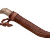 Traditionele lederen schede volgens de Samische traditie met leren riemen (geen riemlus), inclusief decoratief reliëf en plastic inzetstuk. 12C27 lemmet staal.