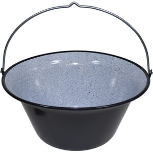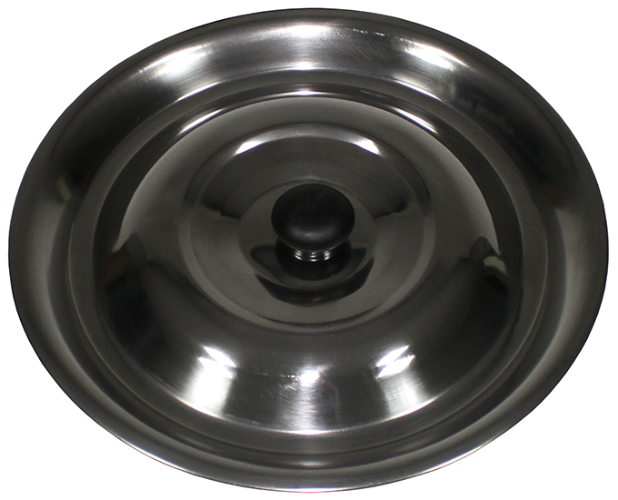 Geëmaileerd metalen deksel voor heksenketels en andere grote pannen en ketels. – Met kunststof knop – Doorsnede: ca. 22 cm – Materiaal: 100% geëmailleerd metaal