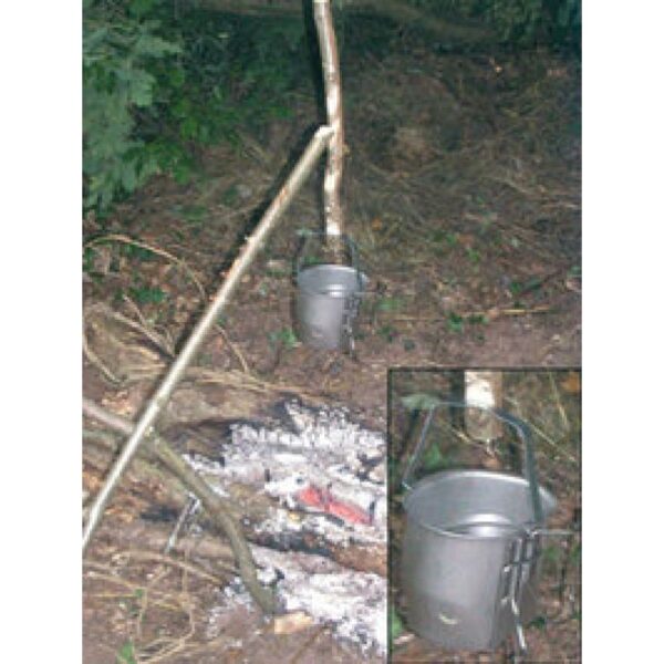 Handig lichtgewicht hengseltje dat aan een militaire mok geklemd kan worden. Je kunt de mok dan als een z.g. Billycan boven een vuurtje hangen.