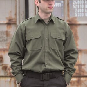 Chevalier Hepple shirt. Katoenen twill shirt. Borstzak met klep.