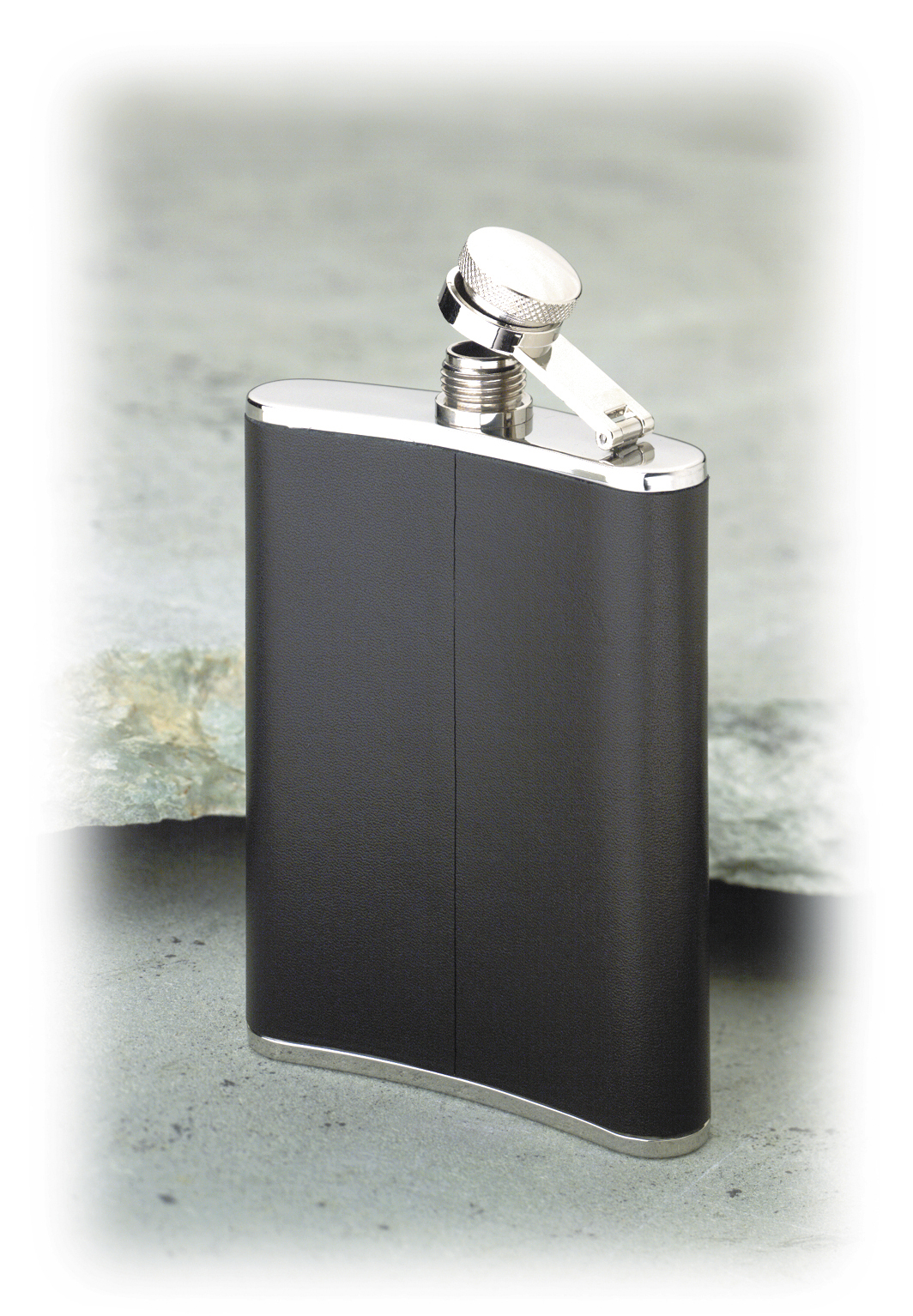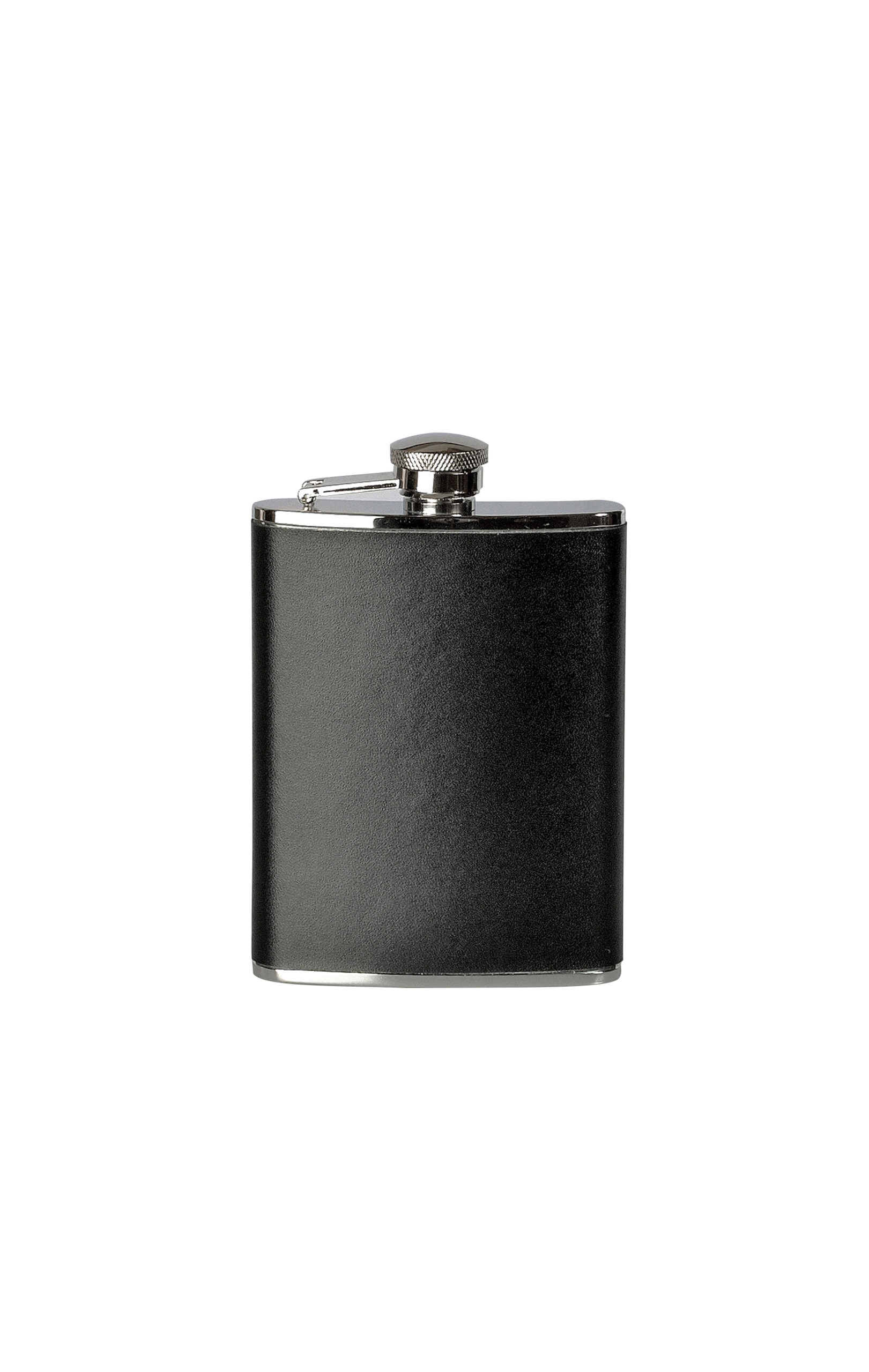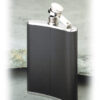 Heupfles van roestvrij staal met een mooie en stroeve leren hoes (kunstleer). Gemaakt van geur- en smaakloos, robuust en duurzaam roestvrij staal. Door de slanke en licht gebogen vorm is hij gemakkelijk mee te nemen in de binnen- of achterzak.