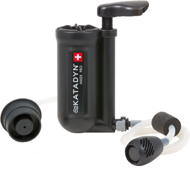 The Katadyn Hiker Pro is the most widely sold microfilter in the U.S. outdoor market. The Hiker Pro is small, weighs a mere 310 grams, and thanks to its large filter area delivers an outstanding pumping performance. It reliably eliminates bacteria, cysts, and sediments from water. The filter is very easy to clean on trips thanks to its cleanable filter protector. The filter protector also appreciably extends the life of the 0.3 micron glassfiber filter cartridge. Its active carbon filling improves the taste of water and eliminates odors. Installation and removal of the input and output hoses is child?s play, thanks to convenient Quick Connect fittings. Includes: prefilter, removable filter protector, 2 quick connect hose sets, Easy Fill bottle adaptor and carry bag