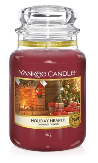 Yankee Candle Holiday Hearth geurkaars. Een gezellige bijeenkomst bij de open haard, allemaal versierd met een feestelijk decor … warm, kruidig ​​en zoet, als de magie van vakantietradities.