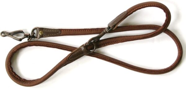 Deze mooie fluweelzachte rondgenaaide riem van bruin elandleer is een must voor iedere hondenbezitter!