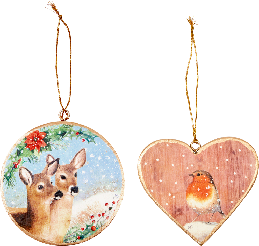 Mooie, winterse houten decoratiehanger in een magisch design met een motief van een hert of roodborstje van Marjolein Bastin. Gedrukt. Gemaakt van mangohout. Helaas geen individuele motiefkeuze mogelijk.