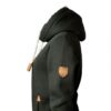 op de capuchon, de gebreide manchetten of de leren applicaties.