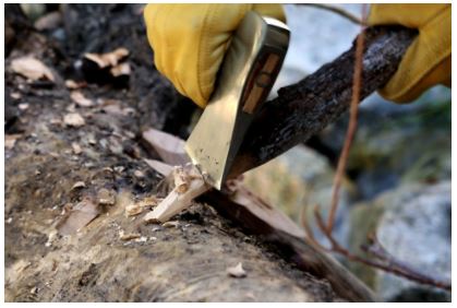 Het ontwerp van de bijlkop in Canadese stijl maakt dubbel gebruik mogelijk voor snij- en kloofwerk.